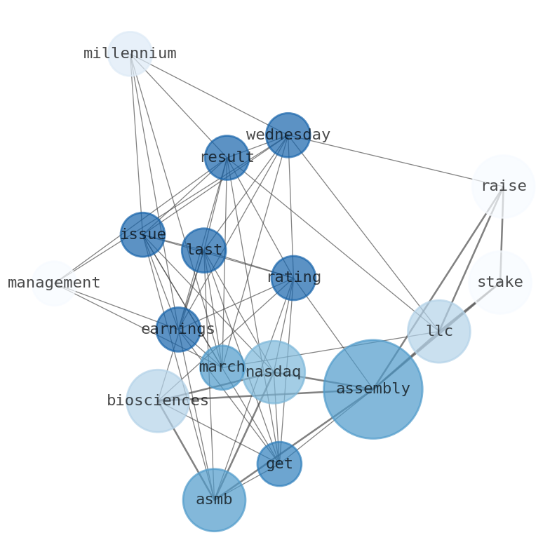 The game is changing. There is a new strategy to evaluate Assembly Biosciences fundamental value, possible risks and most salient advantages. Investors have traditionally relied in reading large amounts of text to evaluate the fundamental value of a stock or company. However, the development of Artificial Intelligence (AI) tools is modifying the way investments are evaluated in markets. Today, machine learning, natural language processing and bigdata allow making this process automatic, reducing large amounts of text to the elements that have a higher activation in a neural network. We programmed an artificial intelligence that reads the whole internet and the uses natural language processing and vectorizers to summarize the information. Usually, the AI reads several hundred pages and summarize it to a short document. This document presents our results. We found that the most common words in the internet about Assembly Biosciences are: Assembly, Biosciences, NASDAQASMB, LLC, raise, stake, Get, …