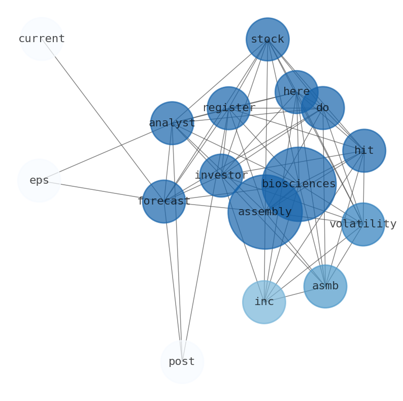 This document will help you to evaluate Assembly Biosciences without reading an infinite amount of sources. Relying only on stock quotes or prices to make investment decisions is a mistake. Analyzing and observing stock charts, highs and lows and other numerical data does not allow to evaluate the real value of a company. Stock quotes and prices are the result of underlying characteristics of a company and of events and news happening around them. For this reason, investing must be based on information, not numbers. As a solution, we programmed an artificial intelligence that reads the whole internet and the uses natural language processing and vectorizers to summarize the information. Usually, the AI reads several hundred pages and summarize it to a short document. This document presents our results. We found that the most common words in the internet about Assembly Biosciences are: Assembly, Biosciences, Inc, ASMB, Volatility, Hits, Heres, …