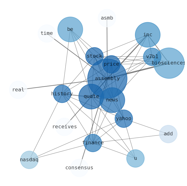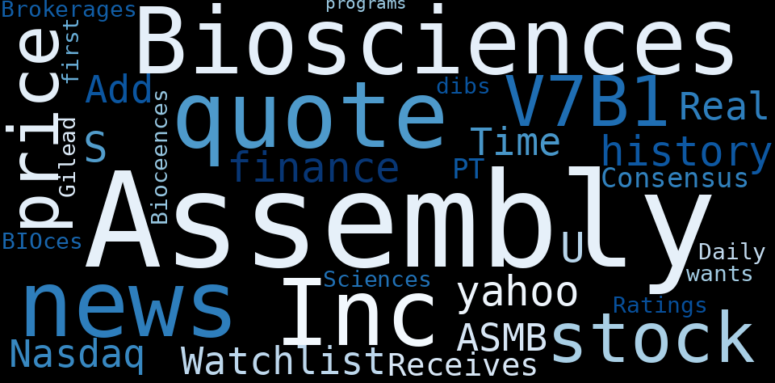 The game is changing. There is a new strategy to evaluate Assembly Biosciences fundamental value, possible risks and most salient advantages. Investors have traditionally relied in reading large amounts of text to evaluate the fundamental value of a stock or company. However, the development of Artificial Intelligence (AI) tools is modifying the way investments are evaluated in markets. Today, machine learning, natural language processing and bigdata allow making this process automatic, reducing large amounts of text to the elements that have a higher activation in a neural network. We programmed an artificial intelligence that reads the whole internet and the uses natural language processing and vectorizers to summarize the information. Usually, the AI reads several hundred pages and summarize it to a short document. This document presents our results. We found that the most common words in the internet about Assembly Biosciences are: Assembly, Biosciences, Inc, V7B1BE, stock, price, news, …