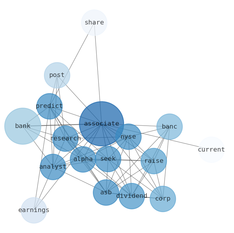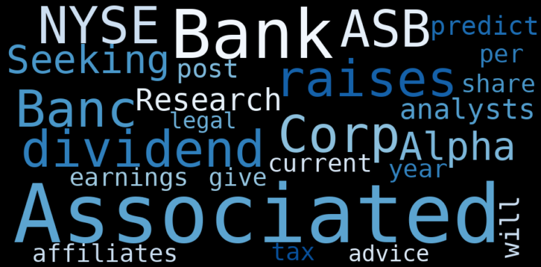This document will help you to evaluate Associated Banc-Corp without reading an infinite amount of sources. Relying only on stock quotes or prices to make investment decisions is a mistake. Analyzing and observing stock charts, highs and lows and other numerical data does not allow to evaluate the real value of a company. Stock quotes and prices are the result of underlying characteristics of a company and of events and news happening around them. For this reason, investing must be based on information, not numbers. As a solution, we programmed an artificial intelligence that reads the whole internet and the uses natural language processing and vectorizers to summarize the information. Usually, the AI reads several hundred pages and summarize it to a short document. This document presents our results. We found that the most common words in the internet about Associated Banc-Corp are: Associated, Bank, BancCorp, raise, dividend, NYSEASB, Seeking, …