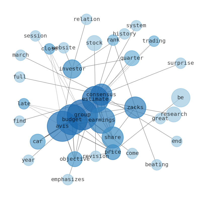 This document will help you to evaluate Avis Budget Group without reading an infinite amount of sources. Relying only on stock quotes or prices to make investment decisions is a mistake. Analyzing and observing stock charts, highs and lows and other numerical data does not allow to evaluate the real value of a company. Stock quotes and prices are the result of underlying characteristics of a company and of events and news happening around them. For this reason, investing must be based on information, not numbers. As a solution, we programmed an artificial intelligence that reads the whole internet and the uses natural language processing and vectorizers to summarize the information. Usually, the AI reads several hundred pages and summarize it to a short document. This document presents our results. We found that the most common words in the internet about Avis Budget Group are: Avis, Group, Budget, earnings, estimate, Zacks, share, and the most common words in the summary are: avis, budget, group, earnings, stock, car, market, . One of the sentences in the summary was: Avis Budget Group (CAR) closed at $173.56 in the latest trading session, marking a -1.78% move from the prior day. Other searches related to this term that the AI found were: stockmarketlive, livestock, stockmarketforbeginners, thestockmarket, stockmarkettoday, stockmarkettrading, stockmarketstocks, todaystockmarket, thestockmarket, marketnews, stockmarketnews, whatisstockmarket, usstockmarket, stockmarketopen. #avis #budget #group #earnings #stock #car #market.