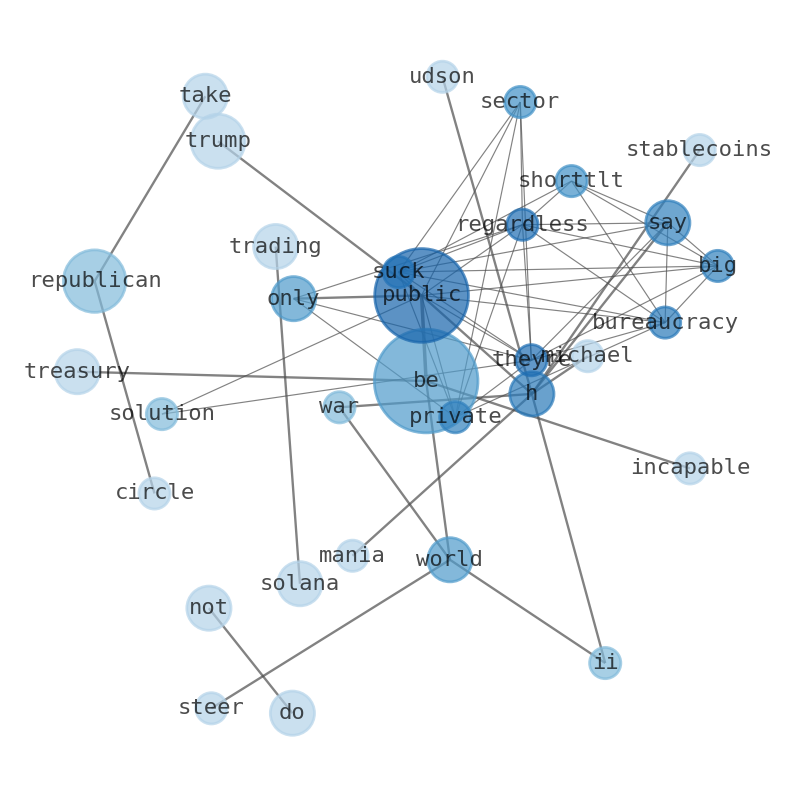 ShortTLT says: Big bureaucracies suck regardless of whether theyre public or private sector. The only solution is to rise against the Republican and Democrat narrative. The United States is steering the world to re-fight World War II, says Michael H. H.UDSON. The public mania around stablecoins is the latest evidence that humans are incapable of making rational decisions. The public urgently needs to understand that freedom depends on defending human agency from incursions by machines designed to shape thinking and feeling in ways that favor corporate, rather than human, flourishing. A number of high schools are awarding A grades to AP Calculus students who do not have any calculus skills and who would get the lowest possible score on the exam if they took it… Andrew Rice has more details on the collapse of public education in America. The only thing keeping Trump afloat is the American publics deep disdain for the Democratic Party. Many progressive state and local governments have gone soft on crime. Noah Smith Noahpinion: Groyperism has slowly taken over among the Republican staffer class, and among young Republican circles more generally. Trump still gets decently high marks on border security, as distinct from immigration. House Republicans issued a 50-page report on “Operation Chokepoint 2.0,” alleging that the Fed, FDIC, OCC, and SEC pressured banks to avoid crypto through pause letters, informal guidance, and SAB 121. Early public tallies placed losses in a $6 million to $7 million-plus range across multiple chains. Solana is popular as a destination for token trading and internet capital markets. Forward Industries is the largest Solana treasury, boasting 6,921,432 SOL. Bitcoin trading around $90,000 does not signal either strength or weakness at this point. 2026 is likely to become a “altcoin treasury year” Dogecoin was embraced by institutions, bought up by public companies, and its namesake was shared with a highly controversial U.S. government agency. The Trump administration positioned Musk as the public face of the Department of Government Efficiency. The year marked a turning point for crypto companies accessing public markets, driven by renewed retail interest, political tailwinds and improved market conditions.