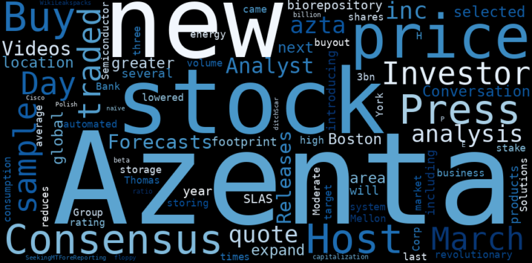Are looking for the most relevant information about Azenta? Investor spend a lot of time searching for information to make investment decisions in Azenta. This task is often burdensome and consumes huge amounts of free time. It also leads to mistakes due to fatigue and bounded rationality. As a solution, we programmed an artificial intelligence that reads the whole internet and the uses natural language processing and vectorizers to summarize the information. Usually, the AI reads several hundred pages and summarize it to a short document. This document presents our results. We found that the most common words in the internet about Azenta are: Azenta, stock, price, Buy, Press, Host, Investor, and the most common words in the summary are: sample, azenta, biological, handle, market, revenue, global, . One of the sentences in the summary was: Azenta traded as high as $67.17 and last traded at $67.09, with a volume …