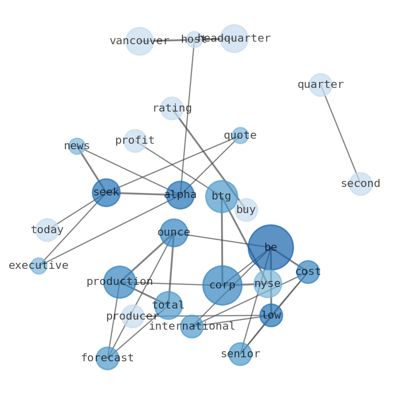 This document will help you to evaluate B2Gold without reading an infinite amount of sources. Relying only on stock quotes or prices to make investment decisions is a mistake. Analyzing and observing stock charts, highs and lows and other numerical data does not allow to evaluate the real value of a company. Stock quotes and prices are the result of underlying characteristics of a company and of events and news happening around them. For this reason, investing must be based on information, not numbers. As a solution, we programmed an artificial intelligence that reads the whole internet and the uses natural language processing and vectorizers to summarize the information. Usually, the AI reads several hundred pages and summarize it to a short document. This document presents our results. We found that the most common words in the internet about B2Gold are: B2Gold, gold, Corp, production, Total, ounce, exploration, and the most common words in the summary are: b2gold, gold, corp, share, stock, q2, result, . One of the sentences in the summary was: (BTG) on Wednesday reported second-quarter profit of $80.4. Other searches related to this term that the AI found were: stockmarketlive, livestock, stockmarketforbeginners, thestockmarket, stockmarkettoday, stockmarkettrading, stockmarketstocks, todaystockmarket, thestockmarket, marketnews, stockmarketnews, whatisstockmarket, usstockmarket, stockmarketopen. #b2gold #gold #corp #share #stock #q2 #result.