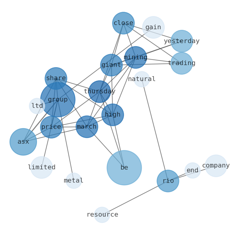 This document will help you to evaluate BHP Group without reading an infinite amount of sources. Relying only on stock quotes or prices to make investment decisions is a mistake. Analyzing and observing stock charts, highs and lows and other numerical data does not allow to evaluate the real value of a company. Stock quotes and prices are the result of underlying characteristics of a company and of events and news happening around them. For this reason, investing must be based on information, not numbers. As a solution, we programmed an artificial intelligence that reads the whole internet and the uses natural language processing and vectorizers to summarize the information. Usually, the AI reads several hundred pages and summarize it to a short document. This document presents our results. We found that the most common words in the internet about BHP Group are: BHP, Group, Limited, ASX, company, gain, share, …