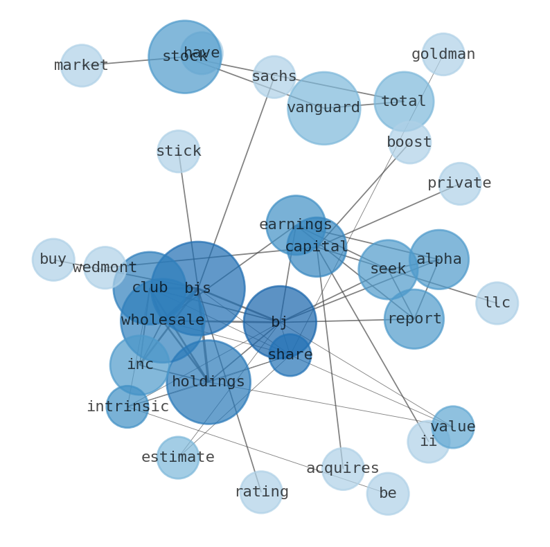 Are looking for the most relevant information about BJs Wholesale Club Holdings? Investor spend a lot of time searching for information to make investment decisions in BJs Wholesale Club Holdings. This task is often burdensome and consumes huge amounts of free time. It also leads to mistakes due to fatigue and bounded rationality. As a solution, we programmed an artificial intelligence that reads the whole internet and the uses natural language processing and vectorizers to summarize the information. Usually, the AI reads several hundred pages and summarize it to a short document. This document presents our results. We found that the most common words in the internet about BJs Wholesale Club Holdings are: Bjs, Holdings, Stock, Vanguard, Wholesale, Club, BJ, and the most common words in the summary are: club, bjs, wholesale, stock, holding, bj, inc, . One of the sentences in the summary was: Bjs Wholesale Club Holdings, Inc. …