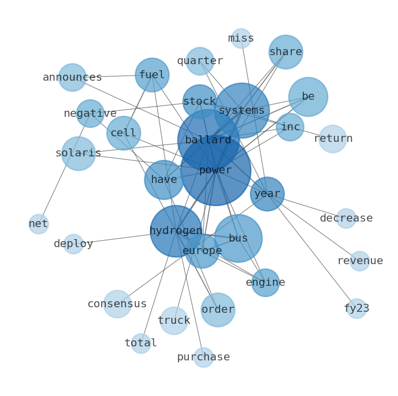 This document will help you to evaluate Ballard Power Systems without reading an infinite amount of sources. Relying only on stock quotes or prices to make investment decisions is a mistake. Analyzing and observing stock charts, highs and lows and other numerical data does not allow to evaluate the real value of a company. Stock quotes and prices are the result of underlying characteristics of a company and of events and news happening around them. For this reason, investing must be based on information, not numbers. As a solution, we programmed an artificial intelligence that reads the whole internet and the uses natural language processing and vectorizers to summarize the information. Usually, the AI reads several hundred pages and summarize it to a short document. This document presents our results. We found that the most common words in the internet about Ballard Power Systems are: Ballard, Power, Systems, hydrogen, power, …