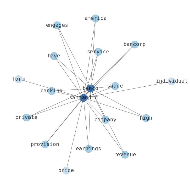This document will help you to evaluate Banco Santander without reading an infinite amount of sources. Relying only on stock quotes or prices to make investment decisions is a mistake. Analyzing and observing stock charts, highs and lows and other numerical data does not allow to evaluate the real value of a company. Stock quotes and prices are the result of underlying characteristics of a company and of events and news happening around them. For this reason, investing must be based on information, not numbers. As a solution, we programmed an artificial intelligence that reads the whole internet and the uses natural language processing and vectorizers to summarize the information. Usually, the AI reads several hundred pages and summarize it to a short document. This document presents our results. We found that the most common words in the internet about Banco Santander are: Santander, Banco, Chile, loan, subsidiary, sign, large, …