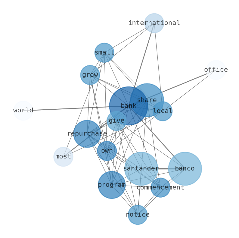 This document will help you to evaluate Banco Santander without reading an infinite amount of sources. Relying only on stock quotes or prices to make investment decisions is a mistake. Analyzing and observing stock charts, highs and lows and other numerical data does not allow to evaluate the real value of a company. Stock quotes and prices are the result of underlying characteristics of a company and of events and news happening around them. For this reason, investing must be based on information, not numbers. As a solution, we programmed an artificial intelligence that reads the whole internet and the uses natural language processing and vectorizers to summarize the information. Usually, the AI reads several hundred pages and summarize it to a short document. This document presents our results. We found that the most common words in the internet about Banco Santander are: bank, Banco, Santander, program, repurchase, share, give, and the most common words in the summary are: santander, banco, bank, stock, review, share, news, . One of the sentences in the summary was: The banks stock experienced an increase of 1.78% today. Other searches related to this term that the AI found were: stockmarketlive, livestock, stockmarketforbeginners, thestockmarket, stockmarkettoday, stockmarkettrading, stockmarketstocks, todaystockmarket, thestockmarket, marketnews, stockmarketnews, whatisstockmarket, usstockmarket, stockmarketopen. #santander #banco #bank #stock #review #share #news.