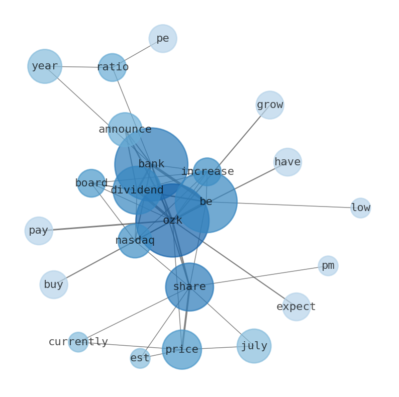 This document will help you to evaluate Bank OZK without reading an infinite amount of sources. Relying only on stock quotes or prices to make investment decisions is a mistake. Analyzing and observing stock charts, highs and lows and other numerical data does not allow to evaluate the real value of a company. Stock quotes and prices are the result of underlying characteristics of a company and of events and news happening around them. For this reason, investing must be based on information, not numbers. As a solution, we programmed an artificial intelligence that reads the whole internet and the uses natural language processing and vectorizers to summarize the information. Usually, the AI reads several hundred pages and summarize it to a short document. This document presents our results. We found that the most common words in the internet about Bank OZK are: Bank, OZK, OzK, dividend, share, price, July, and the most common words in the summary are: bank, best, cd, ozk, rate, online, credit, . One of the sentences in the summary was: Bank OZK (NASDAQ:OZK) Is Increasing Its Dividend To $0.36. Other searches related to this term that the AI found were: stockmarketlive, livestock, stockmarketforbeginners, thestockmarket, stockmarkettoday, stockmarkettrading, stockmarketstocks, todaystockmarket, thestockmarket, marketnews, stockmarketnews, whatisstockmarket, usstockmarket, stockmarketopen. #bank #best #cd #ozk #rate #online #credit.