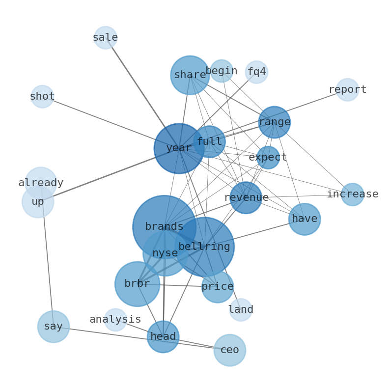 This document will help you to evaluate Bellring Brands without reading an infinite amount of sources. Relying only on stock quotes or prices to make investment decisions is a mistake. Analyzing and observing stock charts, highs and lows and other numerical data does not allow to evaluate the real value of a company. Stock quotes and prices are the result of underlying characteristics of a company and of events and news happening around them. For this reason, investing must be based on information, not numbers. As a solution, we programmed an artificial intelligence that reads the whole internet and the uses natural language processing and vectorizers to summarize the information. Usually, the AI reads several hundred pages and summarize it to a short document. This document presents our results. We found that the most common words in the internet about Bellring Brands are: Brands, BellRing, Shares, revenue, range, NYSEBRBR, price, …
