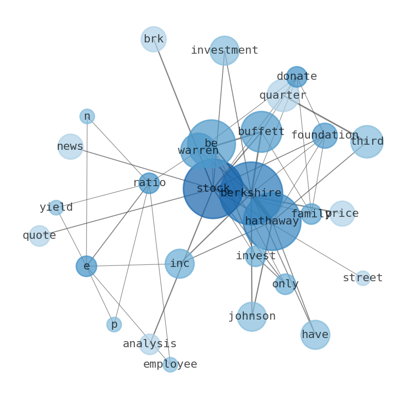 How much time have you spent trying to decide whether investing in Berkshire Hathaway? Many investors start with the dream of being free. They expect to find on the stock market an option to have time to develop their own interests and hobbies. That is, a way to escape a 9 to 5 job. However, investment is complex and investors end up spending whole days (and nights) trying to figure out which the right stock to invest is. The dream of stock investing becomes the nightmare of facing infinity amounts of information. As a solution, we programmed an artificial intelligence that reads the whole internet and the uses natural language processing and vectorizers to summarize the information. Usually, the AI reads several hundred pages and summarize it to a short document. This document presents our results. We found that the most common words in the internet about Berkshire Hathaway are: Berkshire, Hathaway, stock, Buffett, Warren, third, quarter, and the most common words in the summary are: berkshire, hathaway, stock, warren, buffett, share, company, . One of the sentences in the summary was: corporations by total revenue.. Other searches related to this term that the AI found were: stockmarketlive, livestock, stockmarketforbeginners, thestockmarket, stockmarkettoday, stockmarkettrading, stockmarketstocks, todaystockmarket, thestockmarket, marketnews, stockmarketnews, whatisstockmarket, usstockmarket, stockmarketopen. #berkshire #hathaway #stock #warren #buffett #share #company.