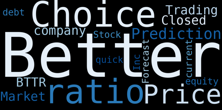 This document will help you to evaluate Better Choice Company without reading an infinite amount of sources. Relying only on stock quotes or prices to make investment decisions is a mistake. Analyzing and observing stock charts, highs and lows and other numerical data does not allow to evaluate the real value of a company. Stock quotes and prices are the result of underlying characteristics of a company and of events and news happening around them. For this reason, investing must be based on information, not numbers. As a solution, we programmed an artificial intelligence that reads the whole internet and the uses natural language processing and vectorizers to summarize the information. Usually, the AI reads several hundred pages and summarize it to a short document. This document presents our results. We found that the most common words in the internet about Better Choice Company are: Better, Choice, ratio, Price, Prediction, …