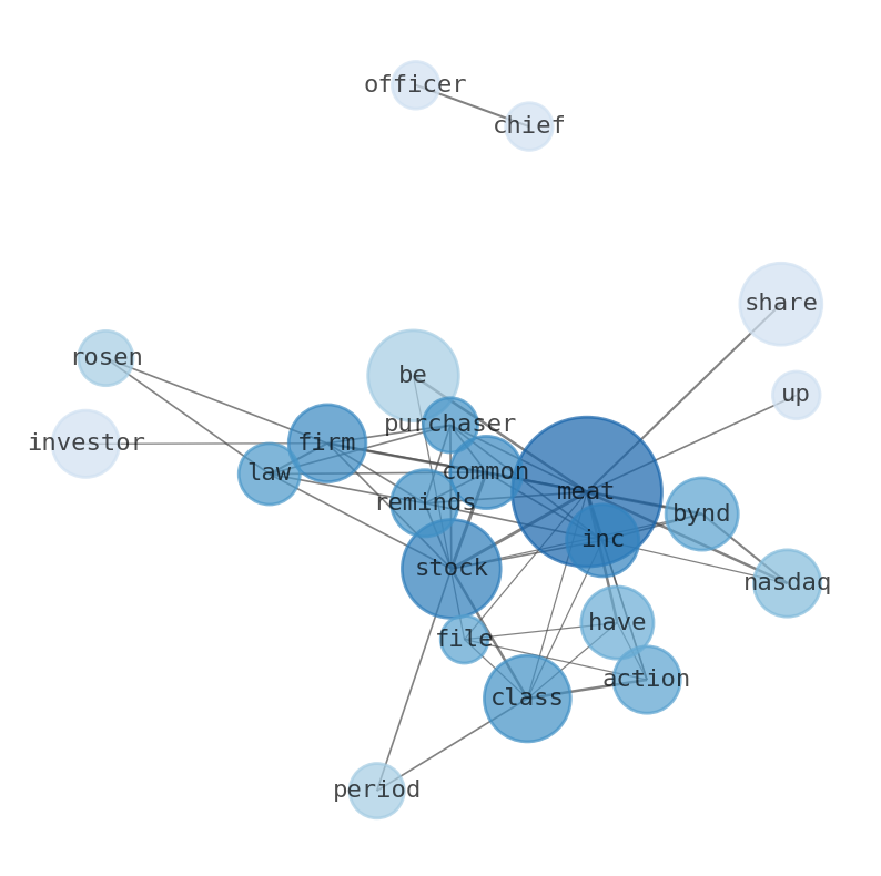 This document will help you to evaluate Beyond Meat without reading an infinite amount of sources. Relying only on stock quotes or prices to make investment decisions is a mistake. Analyzing and observing stock charts, highs and lows and other numerical data does not allow to evaluate the real value of a company. Stock quotes and prices are the result of underlying characteristics of a company and of events and news happening around them. For this reason, investing must be based on information, not numbers. As a solution, we programmed an artificial intelligence that reads the whole internet and the uses natural language processing and vectorizers to summarize the information. Usually, the AI reads several hundred pages and summarize it to a short document. This document presents our results. We found that the most common words in the internet about Beyond Meat are: Beyond, Meat, stock, share, common, investor, remind, …