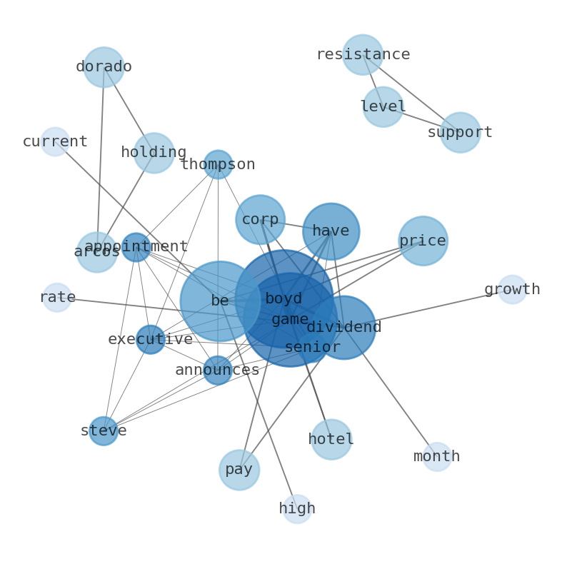 This document will help you to evaluate Boyd Gaming without reading an infinite amount of sources. Relying only on stock quotes or prices to make investment decisions is a mistake. Analyzing and observing stock charts, highs and lows and other numerical data does not allow to evaluate the real value of a company. Stock quotes and prices are the result of underlying characteristics of a company and of events and news happening around them. For this reason, investing must be based on information, not numbers. As a solution, we programmed an artificial intelligence that reads the whole internet and the uses natural language processing and vectorizers to summarize the information. Usually, the AI reads several hundred pages and summarize it to a short document. This document presents our results. We found that the most common words in the internet about Boyd Gaming are: Boyd, Gaming, dividend, price, Corp, pay, BYD, and the most common words in the summary are: game, boyd, stock, dividend, share, usa, news, . One of the sentences in the summary was: The average price target for Boyd Gaming is $76.27, which is 22.74% higher than the current price.. Other searches related to this term that the AI found were: stockmarketlive, livestock, stockmarketforbeginners, thestockmarket, stockmarkettoday, stockmarkettrading, stockmarketstocks, todaystockmarket, thestockmarket, marketnews, stockmarketnews, whatisstockmarket, usstockmarket, stockmarketopen. #game #boyd #stock #dividend #share #usa #news.