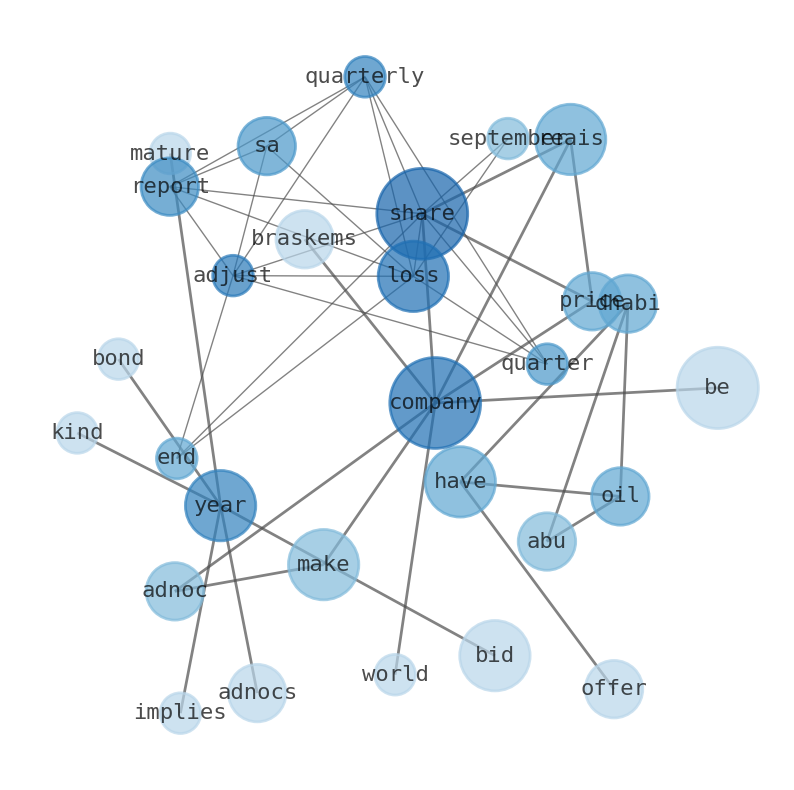 Are looking for the most relevant information about Braskem? Investor spend a lot of time searching for information to make investment decisions in Braskem. This task is often burdensome and consumes huge amounts of free time. It also leads to mistakes due to fatigue and bounded rationality. As a solution, we programmed an artificial intelligence that reads the whole internet and the uses natural language processing and vectorizers to summarize the information. Usually, the AI reads several hundred pages and summarize it to a short document. This document presents our results. We found that the most common words in the internet about Braskem are: Braskem, share, loss, year, make, reais, company, and the most common words in the summary are: braskem, november, news, read, stock, continue, axel, . One of the sentences in the summary was: Abu Dhabi National Oil Company (ADNOC) has made a fresh offer to buy a …