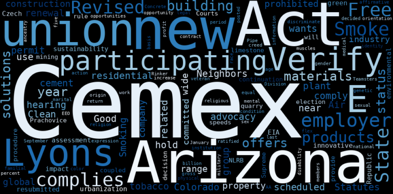 This document will help you to evaluate CEMEX without reading an infinite amount of sources. Relying only on stock quotes or prices to make investment decisions is a mistake. Analyzing and observing stock charts, highs and lows and other numerical data does not allow to evaluate the real value of a company. Stock quotes and prices are the result of underlying characteristics of a company and of events and news happening around them. For this reason, investing must be based on information, not numbers. As a solution, we programmed an artificial intelligence that reads the whole internet and the uses natural language processing and vectorizers to summarize the information. Usually, the AI reads several hundred pages and summarize it to a short document. This document presents our results. We found that the most common words in the internet about CEMEX are: Cemex, CemEX, Act, CEMEX, new, union, Lyons, and the …
