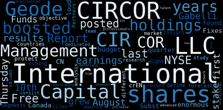 This document will help you to evaluate CIRCOR International without reading an infinite amount of sources. Relying only on stock quotes or prices to make investment decisions is a mistake. Analyzing and observing stock charts, highs and lows and other numerical data does not allow to evaluate the real value of a company. Stock quotes and prices are the result of underlying characteristics of a company and of events and news happening around them. For this reason, investing must be based on information, not numbers. As a solution, we programmed an artificial intelligence that reads the whole internet and the uses natural language processing and vectorizers to summarize the information. Usually, the AI reads several hundred pages and summarize it to a short document. This document presents our results. We found that the most common words in the internet about CIRCOR International are: International, LLC, share, CIRCOR, Capital, Management, boost, …