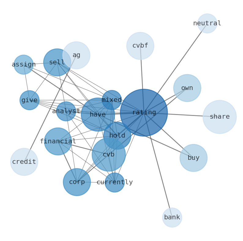CVB Financial Corp. currently holds mixed ratings from analysts; one has given it a sell rating while two have assigned hold ratings and one has a buy rating. The bank owned 301,800 shares of CVB financials stock after selling 35,700 shares during that period. This stake represented approximately 0.22% of the companys total worth. Credit Suisse AG owns 0.15% of CVB Financial Corp. (NASDAQ:CVBF) Stake Increased by Credit Suiss AG. Janney Montgomery Scott raised shares of CVBF from a “neutral” rating to a ‘buy’ rating.