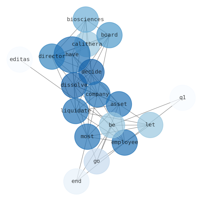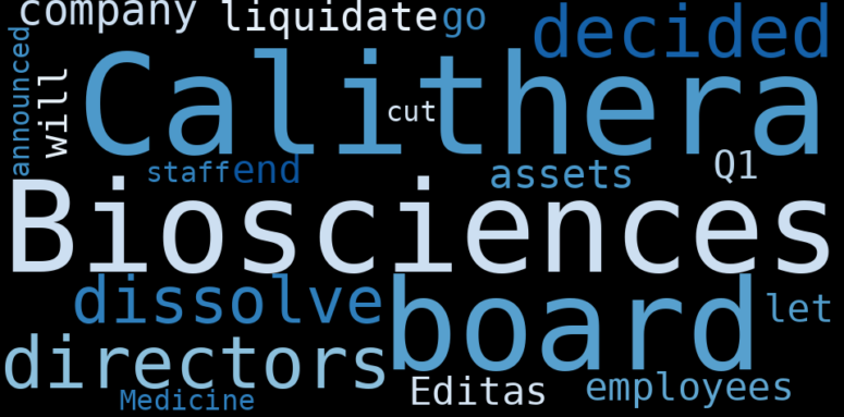 " Calithera Biosciences board of directors has decided to dissolve the company and liquidate its assets. Most employees will be let go by the end of Q1. Editas Medicine announced it has cut 20% of staff."