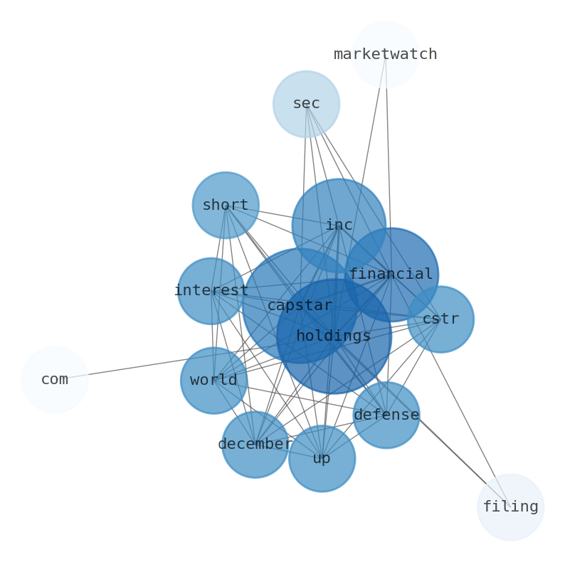 This document will help you to evaluate CapStar Financial Holdings without reading an infinite amount of sources. Relying only on stock quotes or prices to make investment decisions is a mistake. Analyzing and observing stock charts, highs and lows and other numerical data does not allow to evaluate the real value of a company. Stock quotes and prices are the result of underlying characteristics of a company and of events and news happening around them. For this reason, investing must be based on information, not numbers. As a solution, we programmed an artificial intelligence that reads the whole internet and the uses natural language processing and vectorizers to summarize the information. Usually, the AI reads several hundred pages and summarize it to a short document. This document presents our results. We found that the most common words in the internet about CapStar Financial Holdings are: CapStar, holding, Financial, Holdings, Inc, short, interest, and the most common words in the summary are: inc, holding, financial, ltd, group, corp, stock, . One of the sentences in the summary was: sec filings | marketwatch.com. Other searches related to this term that the AI found were: stockmarketlive, livestock, stockmarketforbeginners, thestockmarket, stockmarkettoday, stockmarkettrading, stockmarketstocks, todaystockmarket, thestockmarket, marketnews, stockmarketnews, whatisstockmarket, usstockmarket, stockmarketopen. #inc #holding #financial #ltd #group #corp #stock.
