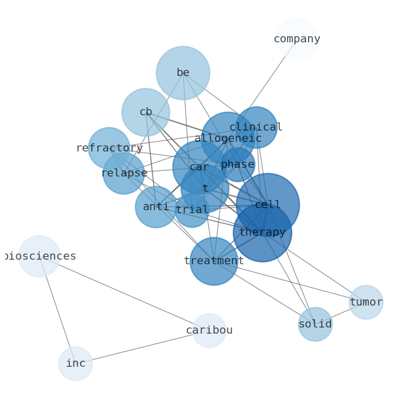 Caribou Biosciences, Inc., a clinical-stage biopharmaceutical company, engages in the development of genome-edited allogeneic cell therapies for the treatment of hematologic malignancies and solid tumors in the United States and internationally. Its lead product candidates are CB-010, an allogeneic anti-CD19 CAR-T cell therapy that is in phase 1 clinical trial to treat relapsed or refractory B cell non-Hodgkin lymphoma; and CB-011, an allogeneic anti-BCMA CAR-T cell therapy that is in phase 1 clinical trial for the treatment of relapsed or refractory multiple myeloma. The company also develops CB-012, an allogeneic anti-CD371 CAR-T cell therapy for the treatment of relapsed or refractory acute myeloid leukemia; and CB-020, an allogeneic CAR-NK cell therapy for the treatment of solid tumors. It has collaboration with AbbVie Manufacturing Management Unlimited Company to develop CAR-T cell therapies. Caribou Biosciences, Inc. was incorporated in 2011 and is headquartered in Berkeley, California.