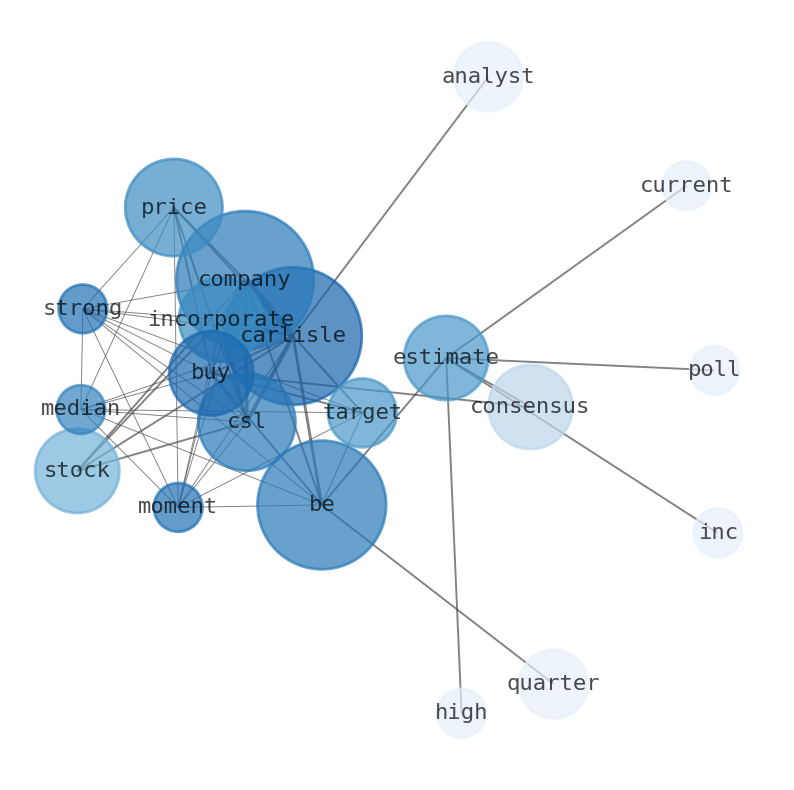 Are looking for the most relevant information about Carlisle Companies? Investor spend a lot of time searching for information to make investment decisions in Carlisle Companies. This task is often burdensome and consumes huge amounts of free time. It also leads to mistakes due to fatigue and bounded rationality. As a solution, we programmed an artificial intelligence that reads the whole internet and the uses natural language processing and vectorizers to summarize the information. Usually, the AI reads several hundred pages and summarize it to a short document. This document presents our results. We found that the most common words in the internet about Carlisle Companies are: Carlisle, Companies, price, company, estimate, consensus, stock, and the most common words in the summary are: carlisle, company, job, stock, technology, pa, interconnect, . One of the sentences in the summary was: Carlisle Companies Incorporated (CSL) stock price, news, quote & history - yahoo finance. Other searches related to this term that the AI found were: stockmarketlive, livestock, stockmarketforbeginners, thestockmarket, stockmarkettoday, stockmarkettrading, stockmarketstocks, todaystockmarket, thestockmarket, marketnews, stockmarketnews, whatisstockmarket, usstockmarket, stockmarketopen. #carlisle #company #job #stock #technology #pa #interconnect.