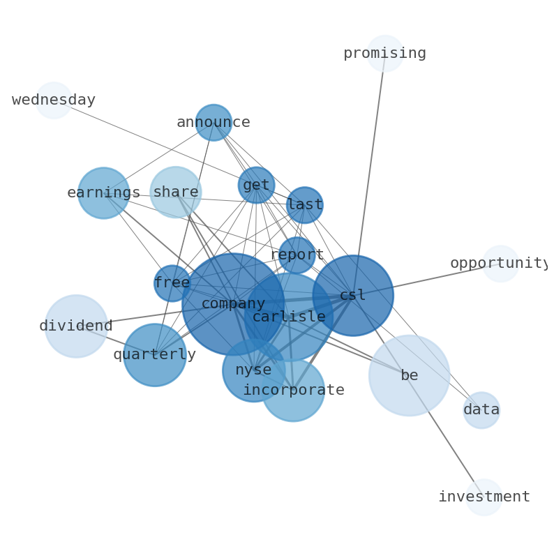 The game is changing. There is a new strategy to evaluate Carlisle Companies fundamental value, possible risks and most salient advantages. Investors have traditionally relied in reading large amounts of text to evaluate the fundamental value of a stock or company. However, the development of Artificial Intelligence (AI) tools is modifying the way investments are evaluated in markets. Today, machine learning, natural language processing and bigdata allow making this process automatic, reducing large amounts of text to the elements that have a higher activation in a neural network. We programmed an artificial intelligence that reads the whole internet and the uses natural language processing and vectorizers to summarize the information. Usually, the AI reads several hundred pages and summarize it to a short document. This document presents our results. We found that the most common words in the internet about Carlisle Companies are: Carlisle, Companies, NYSECSL, quarterly, company, Incorporated, earnings, …