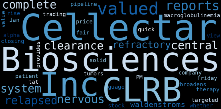 This document will help you to evaluate Cellectar BioSciences without reading an infinite amount of sources. Relying only on stock quotes or prices to make investment decisions is a mistake. Analyzing and observing stock charts, highs and lows and other numerical data does not allow to evaluate the real value of a company. Stock quotes and prices are the result of underlying characteristics of a company and of events and news happening around them. For this reason, investing must be based on information, not numbers. As a solution, we programmed an artificial intelligence that reads the whole internet and the uses natural language processing and vectorizers to summarize the information. Usually, the AI reads several hundred pages and summarize it to a short document. This document presents our results. We found that the most common words in the internet about Cellectar BioSciences are: value, Cellectar, Biosciences, Inc, CLRB, report, complete, …