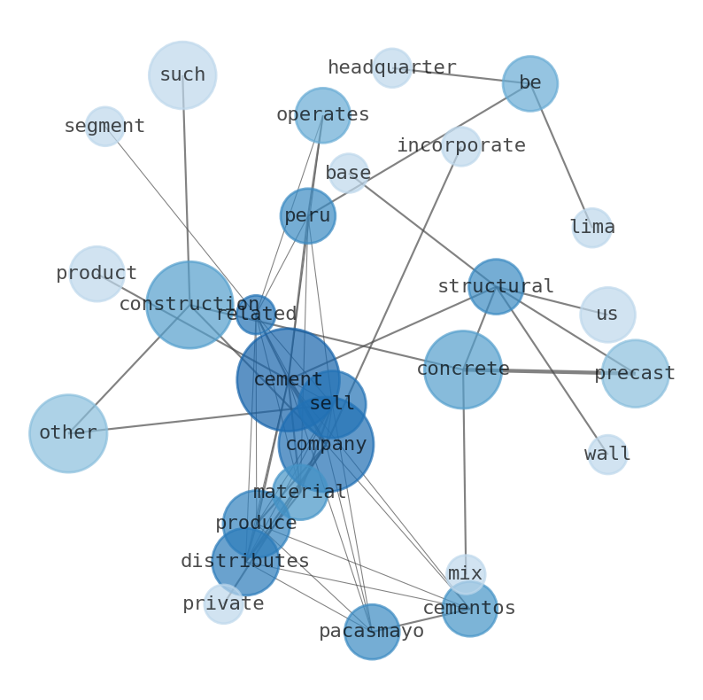 Cementos Pacasmayo S.A.A., a cement company, produces, distributes, and sells cement and cement-related materials in Peru. The company operates through three segments: Cement, Concrete and Precast; Quicklime; and Sales of Construction Supplies. It produces cement for various uses, such as residential and commercial construction, and civil engineering; ready-mix concrete used in construction sites; concrete precast, such as paving units or paver stones for pedestrian walkways, as well as other bricks for partition walls and concrete precast for structural and non-structural uses; and cement-based products. The company also produces and distributes quicklime for use in steel, food, fishing, chemical, mining, agriculture, and other industries. In addition, it sells and distributes other construction materials manufactured by third parties, such as steel rebars, cables, and pipes. As of March 31, 2022, the company operated a network of 240 independent retailers and 379 hardware stores. It also sells its cement products directly to other retailers, private construction companies, and government entities. The company was incorporated in 1949 and is headquartered in Lima, Peru. Cementos Pacasmayo S.A.A. operates as a subsidiary of Inversiones ASPI S.A.