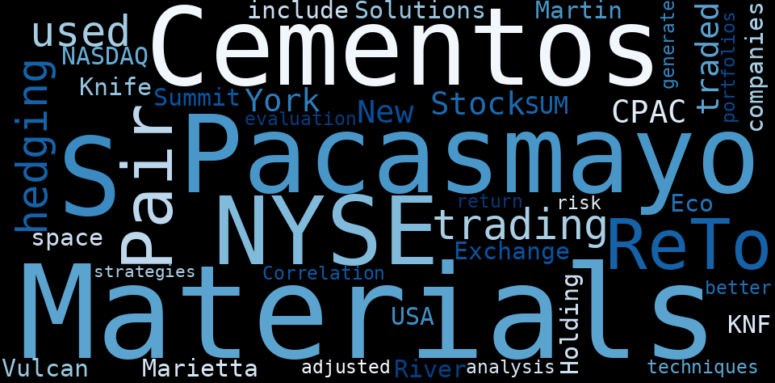 Are looking for the most relevant information about Cementos Pacasmayo? Investor spend a lot of time searching for information to make investment decisions in Cementos Pacasmayo. This task is often burdensome and consumes huge amounts of free time. It also leads to mistakes due to fatigue and bounded rationality. As a solution, we programmed an artificial intelligence that reads the whole internet and the uses natural language processing and vectorizers to summarize the information. Usually, the AI reads several hundred pages and summarize it to a short document. This document presents our results. We found that the most common words in the internet about Cementos Pacasmayo are: Materials, Cementos, Pacasmayo, NYSE, trading, use, hedge, and the most common words in the summary are: cementos, pacasmayo, director, material, pacasmayos, saa, value, . One of the sentences in the summary was: Cementos Pacasmayo S.A. Other searches related to this term that the AI found were: stockmarketlive, livestock, stockmarketforbeginners, thestockmarket, stockmarkettoday, stockmarkettrading, stockmarketstocks, todaystockmarket, thestockmarket, marketnews, stockmarketnews, whatisstockmarket, usstockmarket, stockmarketopen. #cementos #pacasmayo #director #material #pacasmayos #saa #value.