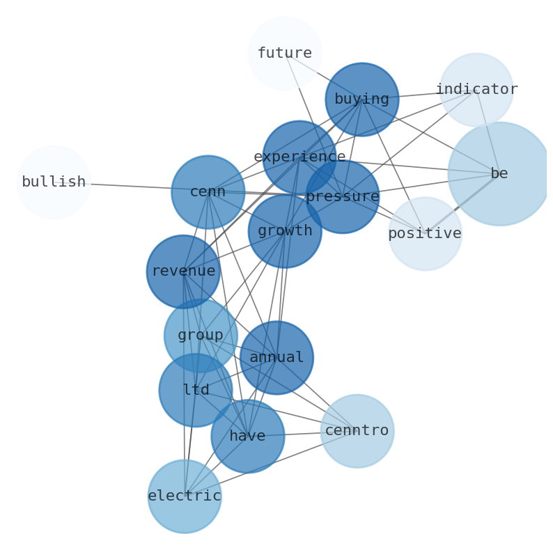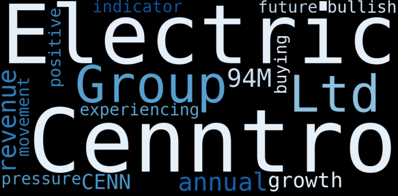 The game is changing. There is a new strategy to evaluate Cenntro Electric Group fundamental value, possible risks and most salient advantages. Investors have traditionally relied in reading large amounts of text to evaluate the fundamental value of a stock or company. However, the development of Artificial Intelligence (AI) tools is modifying the way investments are evaluated in markets. Today, machine learning, natural language processing and bigdata allow making this process automatic, reducing large amounts of text to the elements that have a higher activation in a neural network. We programmed an artificial intelligence that reads the whole internet and the uses natural language processing and vectorizers to summarize the information. Usually, the AI reads several hundred pages and summarize it to a short document. This document presents our results. We found that the most common words in the internet about Cenntro Electric Group are: Cenntro, Electric, Group, Ltd, annual, revenue, growth, and the most common words in the summary are: stock, price, increase, nov, group, electric, inc, . One of the sentences in the summary was: CENN is experiencing buying pressure, which is a positive indicator for future bullish movement.. Other searches related to this term that the AI found were: stockmarketlive, livestock, stockmarketforbeginners, thestockmarket, stockmarkettoday, stockmarkettrading, stockmarketstocks, todaystockmarket, thestockmarket, marketnews, stockmarketnews, whatisstockmarket, usstockmarket, stockmarketopen. #stock #price #increase #nov #group #electric #inc.