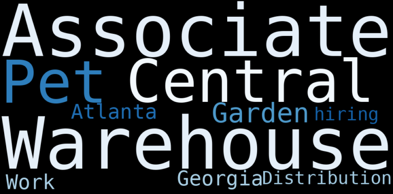 Warehouse Associate at Central Garden & Pet in Atlanta, Georgia 9606 Central Garden and Pet Warehouse Associate. Work at Central Pet Distribution is hiring Warehouse Associates!