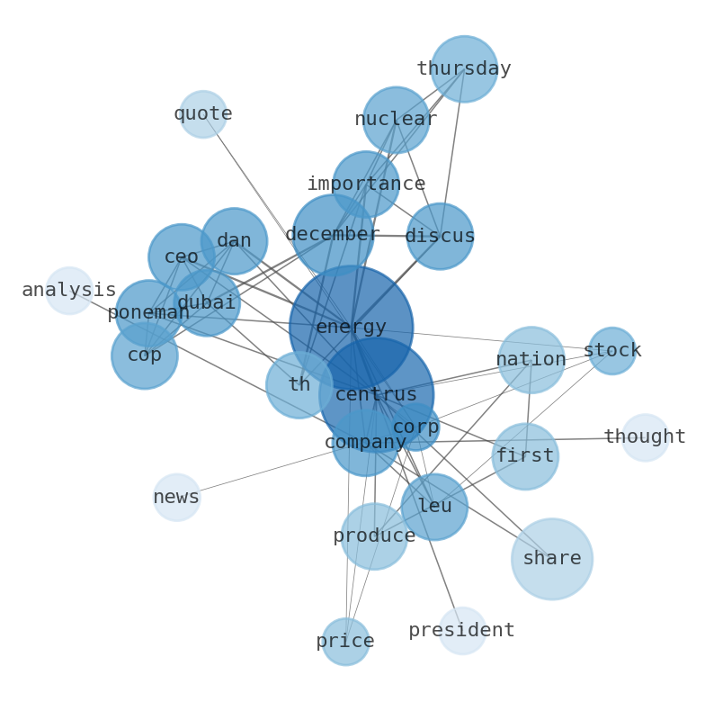 The game is changing. There is a new strategy to evaluate Centrus Energy fundamental value, possible risks and most salient advantages. Investors have traditionally relied in reading large amounts of text to evaluate the fundamental value of a stock or company. However, the development of Artificial Intelligence (AI) tools is modifying the way investments are evaluated in markets. Today, machine learning, natural language processing and bigdata allow making this process automatic, reducing large amounts of text to the elements that have a higher activation in a neural network. We programmed an artificial intelligence that reads the whole internet and the uses natural language processing and vectorizers to summarize the information. Usually, the AI reads several hundred pages and summarize it to a short document. This document presents our results. We found that the most common words in the internet about Centrus Energy are: Centrus, Energy, December, energy, LEU, company, share, and the most common words in the summary are: energy, nuclear, uranium, stock, news, power, centrus, . One of the sentences in the summary was: Centrus produces the nations first 20 kilograms of high-assay low-enriched uranium.. Other searches related to this term that the AI found were: stockmarketlive, livestock, stockmarketforbeginners, thestockmarket, stockmarkettoday, stockmarkettrading, stockmarketstocks, todaystockmarket, thestockmarket, marketnews, stockmarketnews, whatisstockmarket, usstockmarket, stockmarketopen. #energy #nuclear #uranium #stock #news #power #centrus.