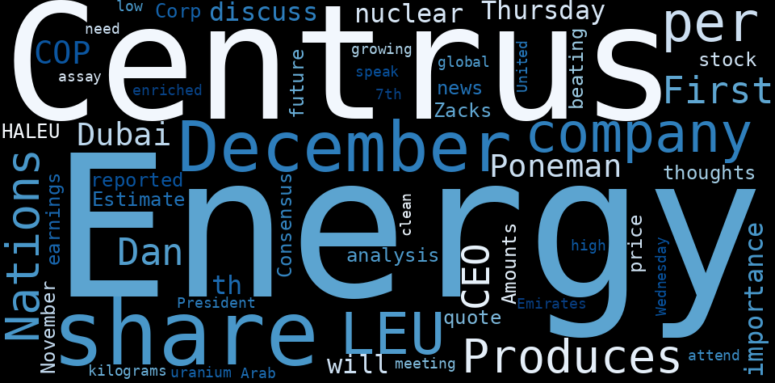 How much time have you spent trying to decide whether investing in Centrus Energy? Many investors start with the dream of being free. They expect to find on the stock market an option to have time to develop their own interests and hobbies. That is, a way to escape a 9 to 5 job. However, investment is complex and investors end up spending whole days (and nights) trying to figure out which the right stock to invest is. The dream of stock investing becomes the nightmare of facing infinity amounts of information. As a solution, we programmed an artificial intelligence that reads the whole internet and the uses natural language processing and vectorizers to summarize the information. Usually, the AI reads several hundred pages and summarize it to a short document. This document presents our results. We found that the most common words in the internet about Centrus Energy are: …