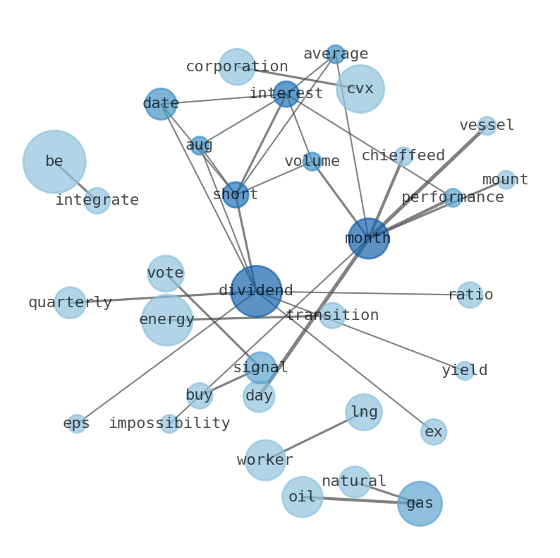 This document will help you to evaluate Chevron without reading an infinite amount of sources. Relying only on stock quotes or prices to make investment decisions is a mistake. Analyzing and observing stock charts, highs and lows and other numerical data does not allow to evaluate the real value of a company. Stock quotes and prices are the result of underlying characteristics of a company and of events and news happening around them. For this reason, investing must be based on information, not numbers. As a solution, we programmed an artificial intelligence that reads the whole internet and the uses natural language processing and vectorizers to summarize the information. Usually, the AI reads several hundred pages and summarize it to a short document. This document presents our results. We found that the most common words in the internet about Chevron are: Chevron, strike, gas, Workers, CVX, oil, dividend, and the …