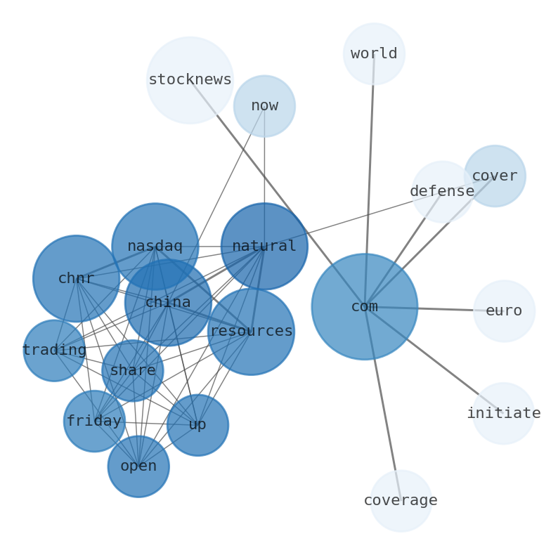 Are looking for the most relevant information about China Natural Resources? Investor spend a lot of time searching for information to make investment decisions in China Natural Resources. This task is often burdensome and consumes huge amounts of free time. It also leads to mistakes due to fatigue and bounded rationality. As a solution, we programmed an artificial intelligence that reads the whole internet and the uses natural language processing and vectorizers to summarize the information. Usually, the AI reads several hundred pages and summarize it to a short document. This document presents our results. We found that the most common words in the internet about China Natural Resources are: China, Natural, Resources, Trading, Up, Shares, NASDAQ, and the most common words in the summary are: china, resource, natural, russia, market, etf, energy, . One of the sentences in the summary was: China Natural Resources Trading Up 4.9 % Shares of NASDAQ CHNR opened at $1.70 on Friday. Other searches related to this term that the AI found were: stockmarketlive, livestock, stockmarketforbeginners, thestockmarket, stockmarkettoday, stockmarkettrading, stockmarketstocks, todaystockmarket, thestockmarket, marketnews, stockmarketnews, whatisstockmarket, usstockmarket, stockmarketopen. #china #resource #natural #russia #market #etf #energy.