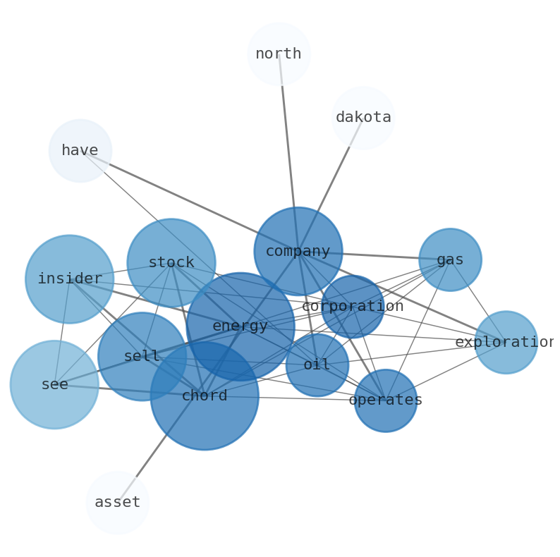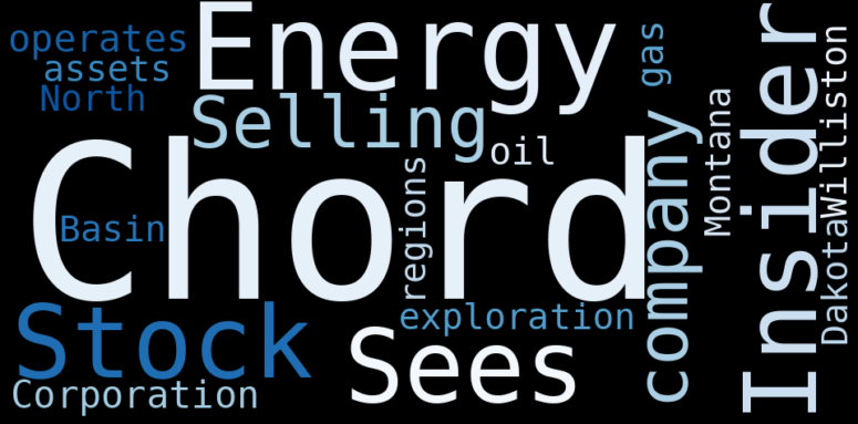 Are looking for the most relevant information about Chord Energy? Investor spend a lot of time searching for information to make investment decisions in Chord Energy. This task is often burdensome and consumes huge amounts of free time. It also leads to mistakes due to fatigue and bounded rationality. As a solution, we programmed an artificial intelligence that reads the whole internet and the uses natural language processing and vectorizers to summarize the information. Usually, the AI reads several hundred pages and summarize it to a short document. This document presents our results. We found that the most common words in the internet about Chord Energy are: Chord, Energy, company, Sees, Insider, Stock, Selling, and the most common words in the summary are: energy, chord, stock, gas, oil, market, use, . One of the sentences in the summary was: Chord Energy Corporation operates as an oil and gas exploration company. …