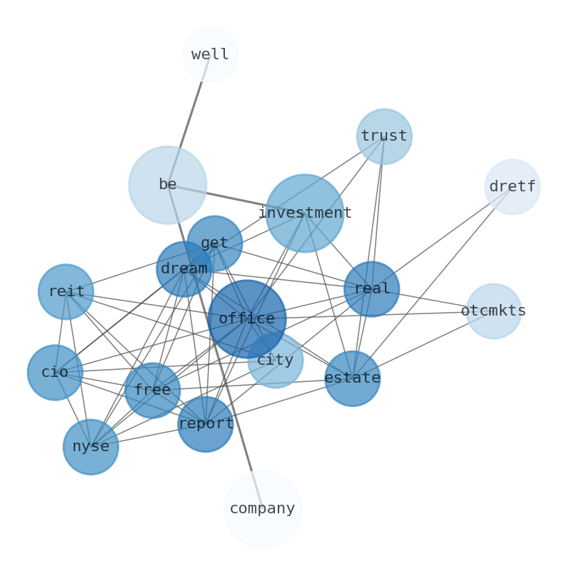 This document will help you to evaluate City Office REIT without reading an infinite amount of sources. Relying only on stock quotes or prices to make investment decisions is a mistake. Analyzing and observing stock charts, highs and lows and other numerical data does not allow to evaluate the real value of a company. Stock quotes and prices are the result of underlying characteristics of a company and of events and news happening around them. For this reason, investing must be based on information, not numbers. As a solution, we programmed an artificial intelligence that reads the whole internet and the uses natural language processing and vectorizers to summarize the information. Usually, the AI reads several hundred pages and summarize it to a short document. This document presents our results. We found that the most common words in the internet about City Office REIT are: Office, company, City, REIT, NYSECIO, …