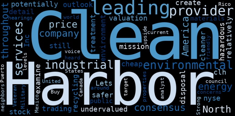 The game is changing. There is a new strategy to evaluate Clean Harbors fundamental value, possible risks and most salient advantages. Investors have traditionally relied in reading large amounts of text to evaluate the fundamental value of a stock or company. However, the development of Artificial Intelligence (AI) tools is modifying the way investments are evaluated in markets. Today, machine learning, natural language processing and bigdata allow making this process automatic, reducing large amounts of text to the elements that have a higher activation in a neural network. We programmed an artificial intelligence that reads the whole internet and the uses natural language processing and vectorizers to summarize the information. Usually, the AI reads several hundred pages and summarize it to a short document. This document presents our results. We found that the most common words in the internet about Clean Harbors are: Clean, Harbors, lead, provider, environmental, industrial, service, …