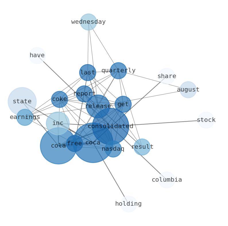 This document will help you to evaluate Coca-Cola Consolidated without reading an infinite amount of sources. Relying only on stock quotes or prices to make investment decisions is a mistake. Analyzing and observing stock charts, highs and lows and other numerical data does not allow to evaluate the real value of a company. Stock quotes and prices are the result of underlying characteristics of a company and of events and news happening around them. For this reason, investing must be based on information, not numbers. As a solution, we programmed an artificial intelligence that reads the whole internet and the uses natural language processing and vectorizers to summarize the information. Usually, the AI reads several hundred pages and summarize it to a short document. This document presents our results. We found that the most common words in the internet about Coca-Cola Consolidated are: Consolidated, CocaCola, release, State, Inc, NASDAQCOKE, Get, …