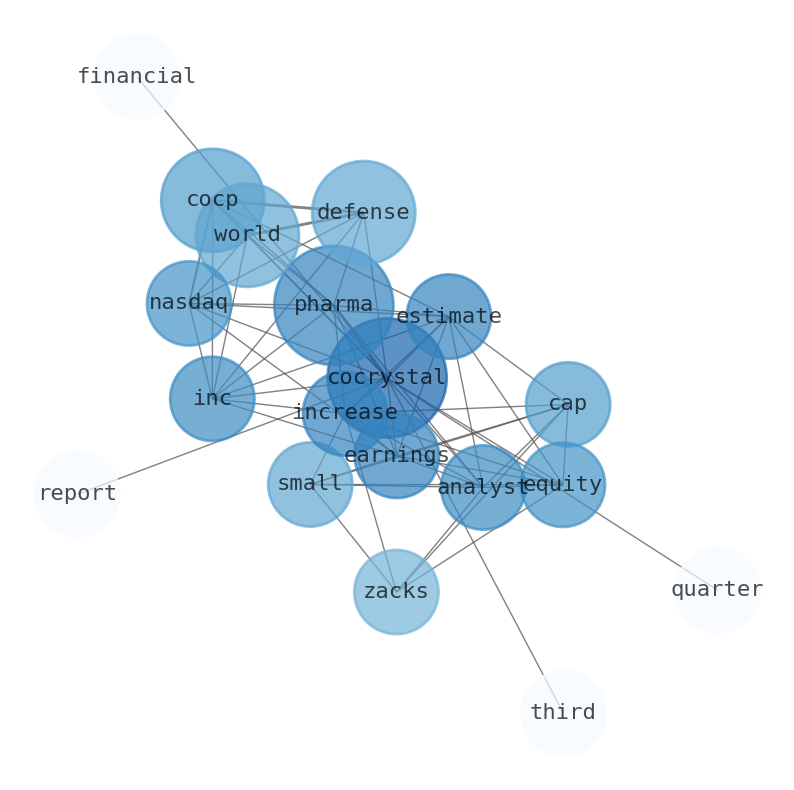 The game is changing. There is a new strategy to evaluate Cocrystal Pharma fundamental value, possible risks and most salient advantages. Investors have traditionally relied in reading large amounts of text to evaluate the fundamental value of a stock or company. However, the development of Artificial Intelligence (AI) tools is modifying the way investments are evaluated in markets. Today, machine learning, natural language processing and bigdata allow making this process automatic, reducing large amounts of text to the elements that have a higher activation in a neural network. We programmed an artificial intelligence that reads the whole internet and the uses natural language processing and vectorizers to summarize the information. Usually, the AI reads several hundred pages and summarize it to a short document. This document presents our results. We found that the most common words in the internet about Cocrystal Pharma are: Cocrystal, Pharma, world, defense, report, Zacks, Small, and the most common words in the summary are: pharmaceutical, impact, sentiment, inc, pm, pharma, nasdaq, . One of the sentences in the summary was: (NAX:Cocp), defense world. Other searches related to this term that the AI found were: stockmarketlive, livestock, stockmarketforbeginners, thestockmarket, stockmarkettoday, stockmarkettrading, stockmarketstocks, todaystockmarket, thestockmarket, marketnews, stockmarketnews, whatisstockmarket, usstockmarket, stockmarketopen. #pharmaceutical #impact #sentiment #inc #pm #pharma #nasdaq.