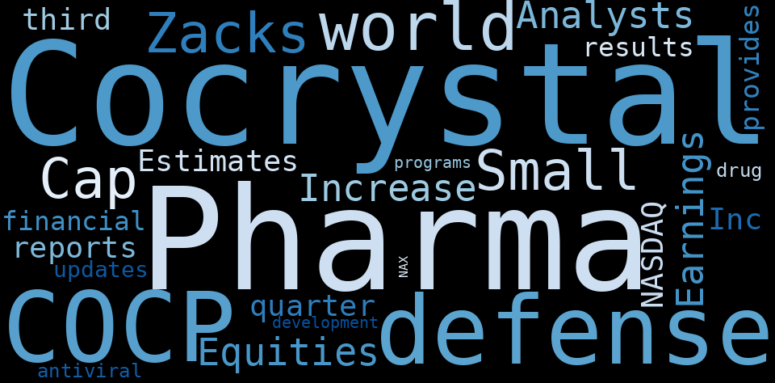 How much time have you spent trying to decide whether investing in Cocrystal Pharma? Many investors start with the dream of being free. They expect to find on the stock market an option to have time to develop their own interests and hobbies. That is, a way to escape a 9 to 5 job. However, investment is complex and investors end up spending whole days (and nights) trying to figure out which the right stock to invest is. The dream of stock investing becomes the nightmare of facing infinity amounts of information. As a solution, we programmed an artificial intelligence that reads the whole internet and the uses natural language processing and vectorizers to summarize the information. Usually, the AI reads several hundred pages and summarize it to a short document. This document presents our results. We found that the most common words in the internet about Cocrystal Pharma are: …