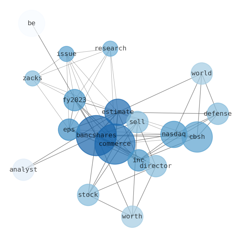 The game is changing. There is a new strategy to evaluate Commerce Bancshares fundamental value, possible risks and most salient advantages. Investors have traditionally relied in reading large amounts of text to evaluate the fundamental value of a stock or company. However, the development of Artificial Intelligence (AI) tools is modifying the way investments are evaluated in markets. Today, machine learning, natural language processing and bigdata allow making this process automatic, reducing large amounts of text to the elements that have a higher activation in a neural network. We programmed an artificial intelligence that reads the whole internet and the uses natural language processing and vectorizers to summarize the information. Usually, the AI reads several hundred pages and summarize it to a short document. This document presents our results. We found that the most common words in the internet about Commerce Bancshares are: Commerce, estimate, Bancshares, commerce, bancshare, analyst, nasdaqcbsh, …