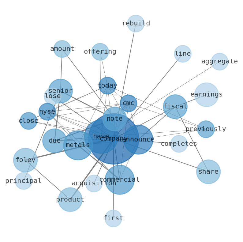 Commercial Metals Company completes acquisition of foley products company. Company is trading at less than 7 times earnings. Company has paid dividends for 224 consecutive quarters.