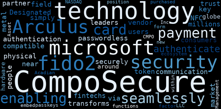 This document will help you to evaluate CompoSecure without reading an infinite amount of sources. Relying only on stock quotes or prices to make investment decisions is a mistake. Analyzing and observing stock charts, highs and lows and other numerical data does not allow to evaluate the real value of a company. Stock quotes and prices are the result of underlying characteristics of a company and of events and news happening around them. For this reason, investing must be based on information, not numbers. As a solution, we programmed an artificial intelligence that reads the whole internet and the uses natural language processing and vectorizers to summarize the information. Usually, the AI reads several hundred pages and summarize it to a short document. This document presents our results. We found that the most common words in the internet about CompoSecure are: CompoSecure, technology, security, CompoSecures, Arculus, seamlessly, payment, and the …