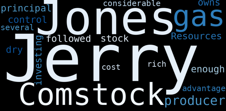 The game is changing. There is a new strategy to evaluate Comstock Resources fundamental value, possible risks and most salient advantages. Investors have traditionally relied in reading large amounts of text to evaluate the fundamental value of a stock or company. However, the development of Artificial Intelligence (AI) tools is modifying the way investments are evaluated in markets. Today, machine learning, natural language processing and bigdata allow making this process automatic, reducing large amounts of text to the elements that have a higher activation in a neural network. We programmed an artificial intelligence that reads the whole internet and the uses natural language processing and vectorizers to summarize the information. Usually, the AI reads several hundred pages and summarize it to a short document. This document presents our results. We found that the most common words in the internet about Comstock Resources are: Jerry, Jones, Comstock, gas, producer, own, enough, …