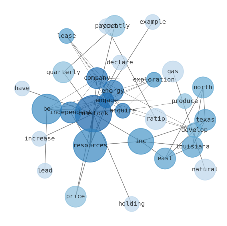 How much time have you spent trying to decide whether investing in Comstock Resources? Many investors start with the dream of being free. They expect to find on the stock market an option to have time to develop their own interests and hobbies. That is, a way to escape a 9 to 5 job. However, investment is complex and investors end up spending whole days (and nights) trying to figure out which the right stock to invest is. The dream of stock investing becomes the nightmare of facing infinity amounts of information. As a solution, we programmed an artificial intelligence that reads the whole internet and the uses natural language processing and vectorizers to summarize the information. Usually, the AI reads several hundred pages and summarize it to a short document. This document presents our results. We found that the most common words in the internet about Comstock Resources are: Comstock, Resources, Inc, independent, company, natural, gas, and the most common words in the summary are: resource, comstock, stock, energy, market, price, news, . One of the sentences in the summary was: Resources Inc gets a 27 rank in the Energy sector.. Other searches related to this term that the AI found were: stockmarketlive, livestock, stockmarketforbeginners, thestockmarket, stockmarkettoday, stockmarkettrading, stockmarketstocks, todaystockmarket, thestockmarket, marketnews, stockmarketnews, whatisstockmarket, usstockmarket, stockmarketopen. #resource #comstock #stock #energy #market #price #news.