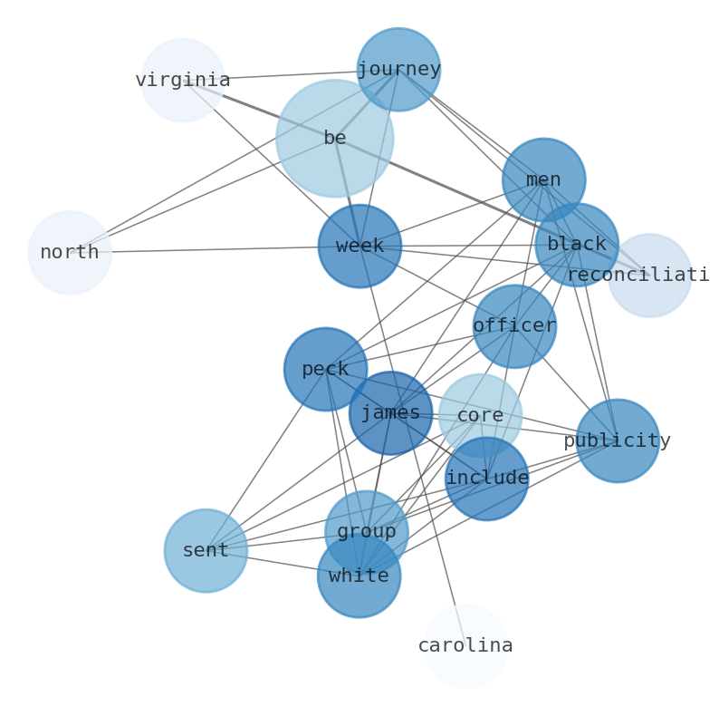 CORE sent a group of eight white (including James Peck , their publicity officer) and eight black men on what was to be a two-week Journey of Reconciliation through Virginia, North Carolina, Tennessee and Kentucky in an effort to end segregation in interstate travel.