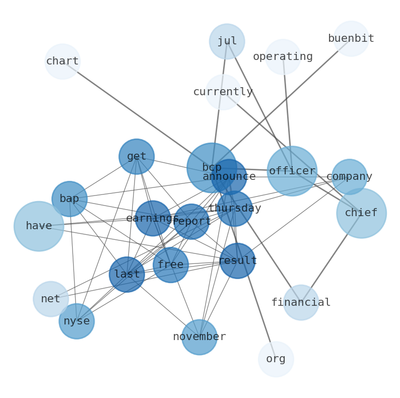 How much time have you spent trying to decide whether investing in Credicorp? Many investors start with the dream of being free. They expect to find on the stock market an option to have time to develop their own interests and hobbies. That is, a way to escape a 9 to 5 job. However, investment is complex and investors end up spending whole days (and nights) trying to figure out which the right stock to invest is. The dream of stock investing becomes the nightmare of facing infinity amounts of information. As a solution, we programmed an artificial intelligence that reads the whole internet and the uses natural language processing and vectorizers to summarize the information. Usually, the AI reads several hundred pages and summarize it to a short document. This document presents our results. We found that the most common words in the internet about Credicorp are: Credicorp, Chief, …